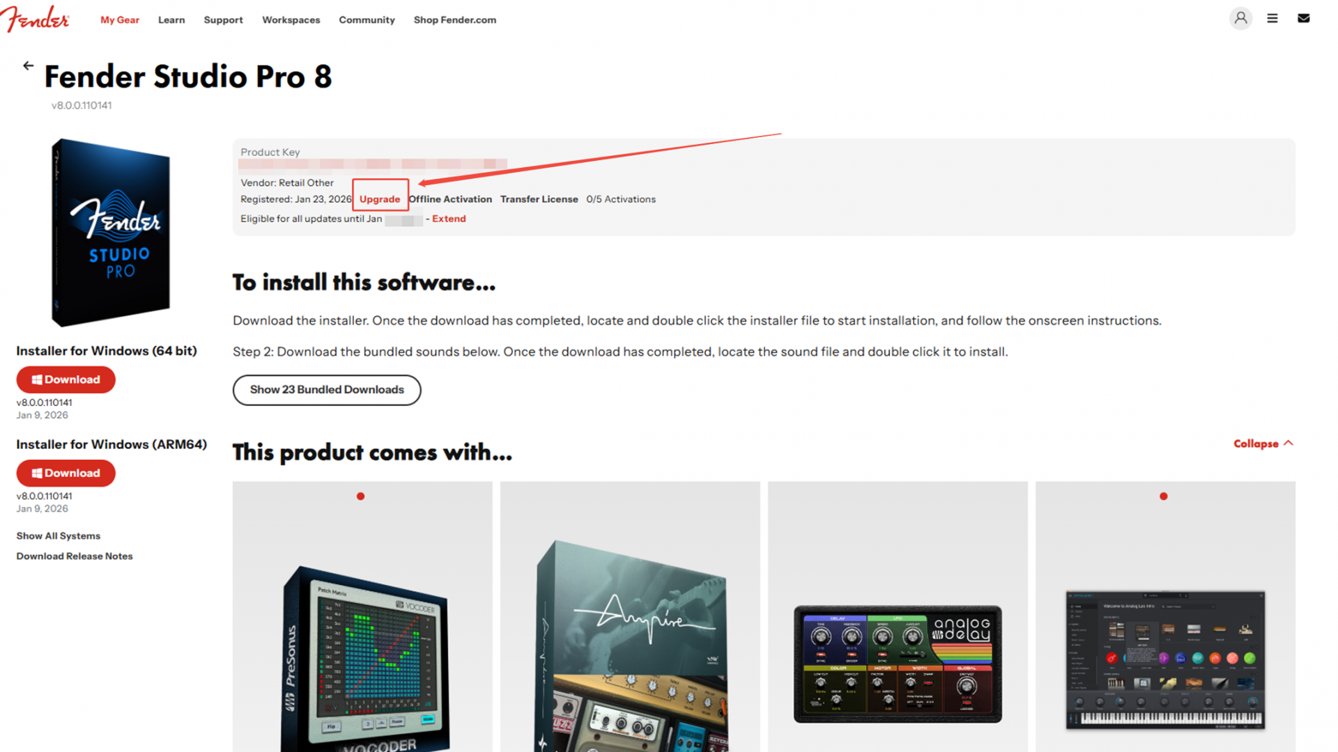 4.打开产品详情页后,我们可以看到这里有一个红色的升级(Upgrade)字样,点击升级。