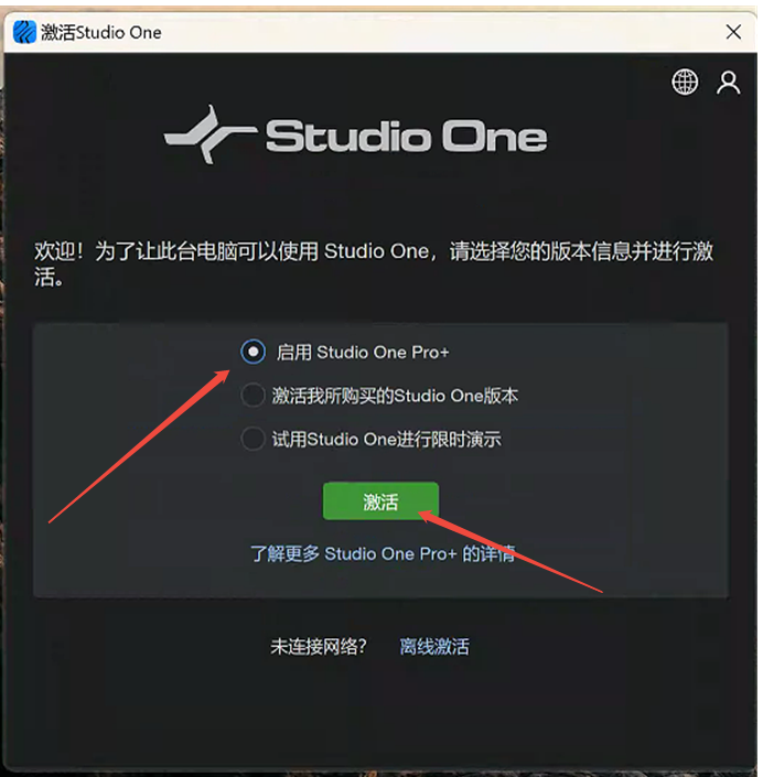 【注意】Studio One Pro+中包含的永久Studio One Pro 7许可证无需单独激活,仅激活Studio One Pro+即可默认解锁!